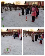 В ходе мероприятия воспитанники соревновались между собой в эстафетах «Сбей сосульку», «Пронеси снежок», «Хоккей».